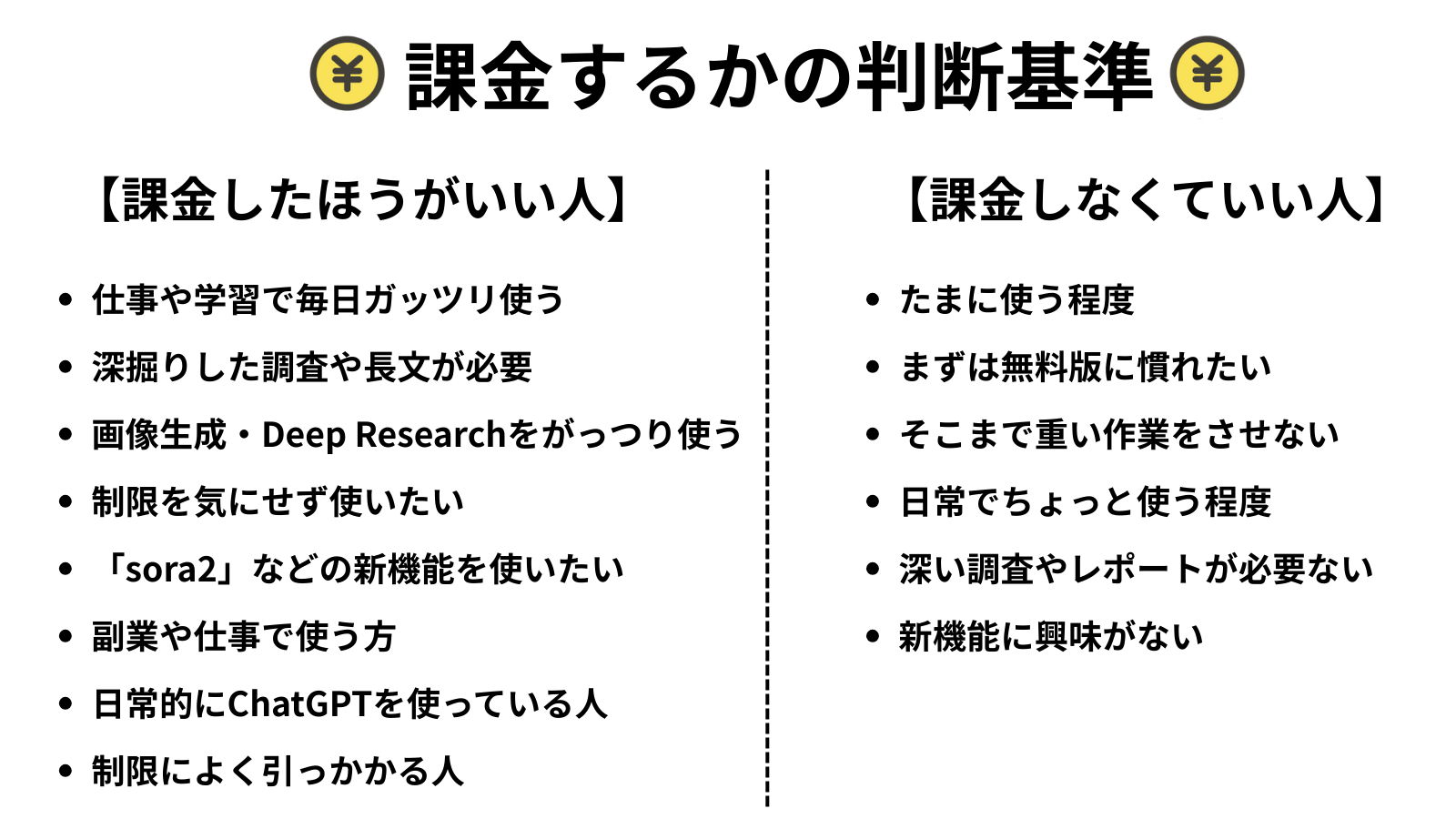 まとめ:ChatGPTに課金すべきかは “使い方” や “目的”で決まる