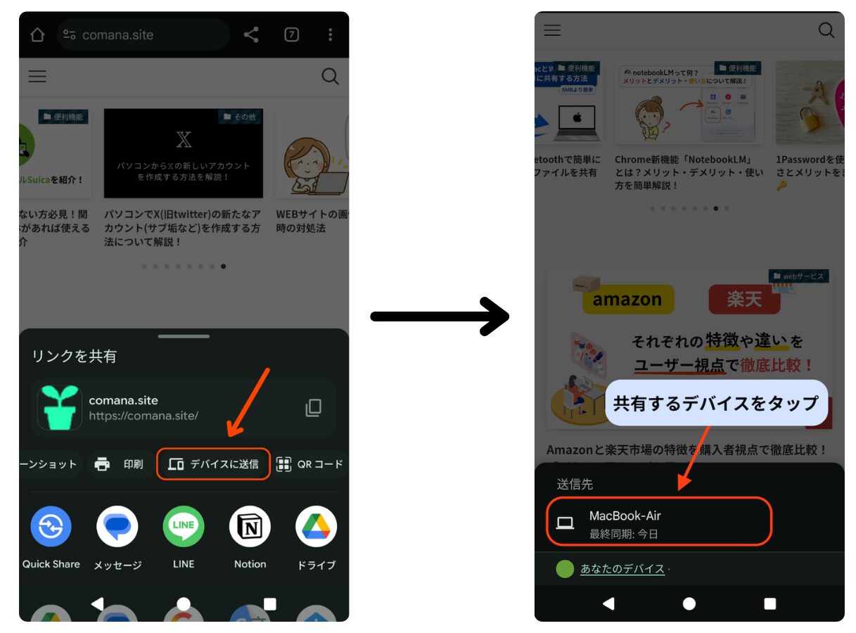 ※この方法は 同じGoogleアカウントにログインしているデバイス間 でのみ利用できます。