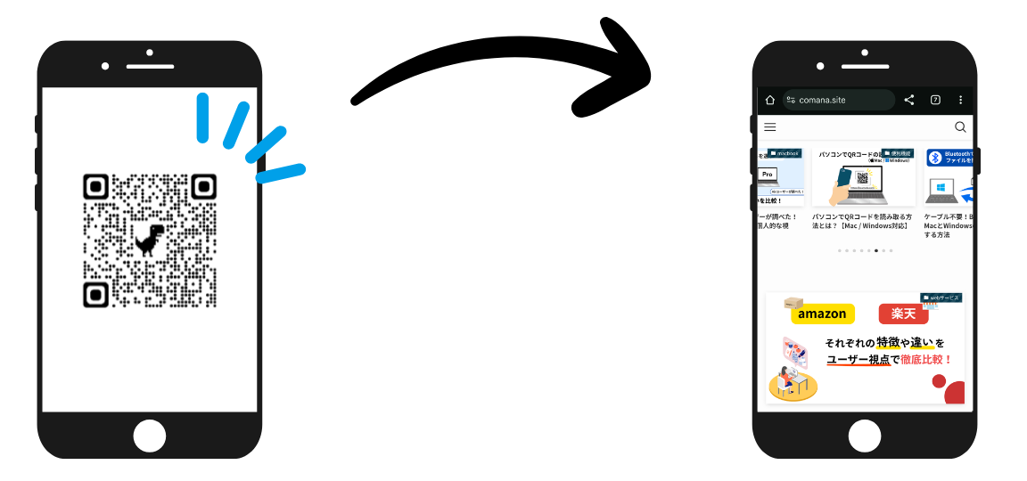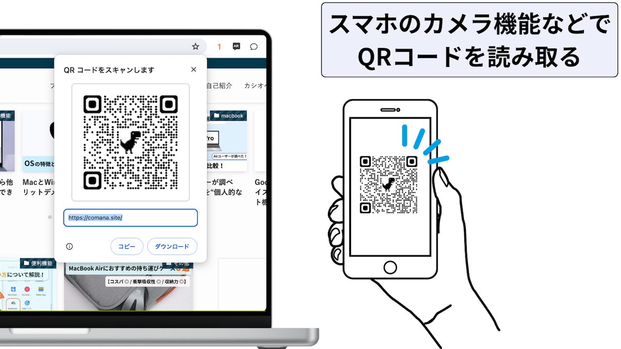 QRコードでサイトを共有 | パソコン ➡︎ スマホ | カメラ読み取りで共有(1番簡単) |