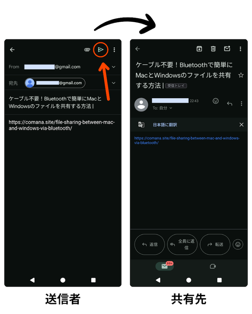 Bluetoothで共有 | スマホ ➡︎ パソコン | 事前設定が必要だけど共有は楽 |