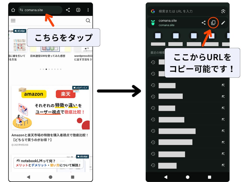ここからは、スマホやパソコンなど近くにある自分のデバイス間でURLを共有する方法について解説していきます。