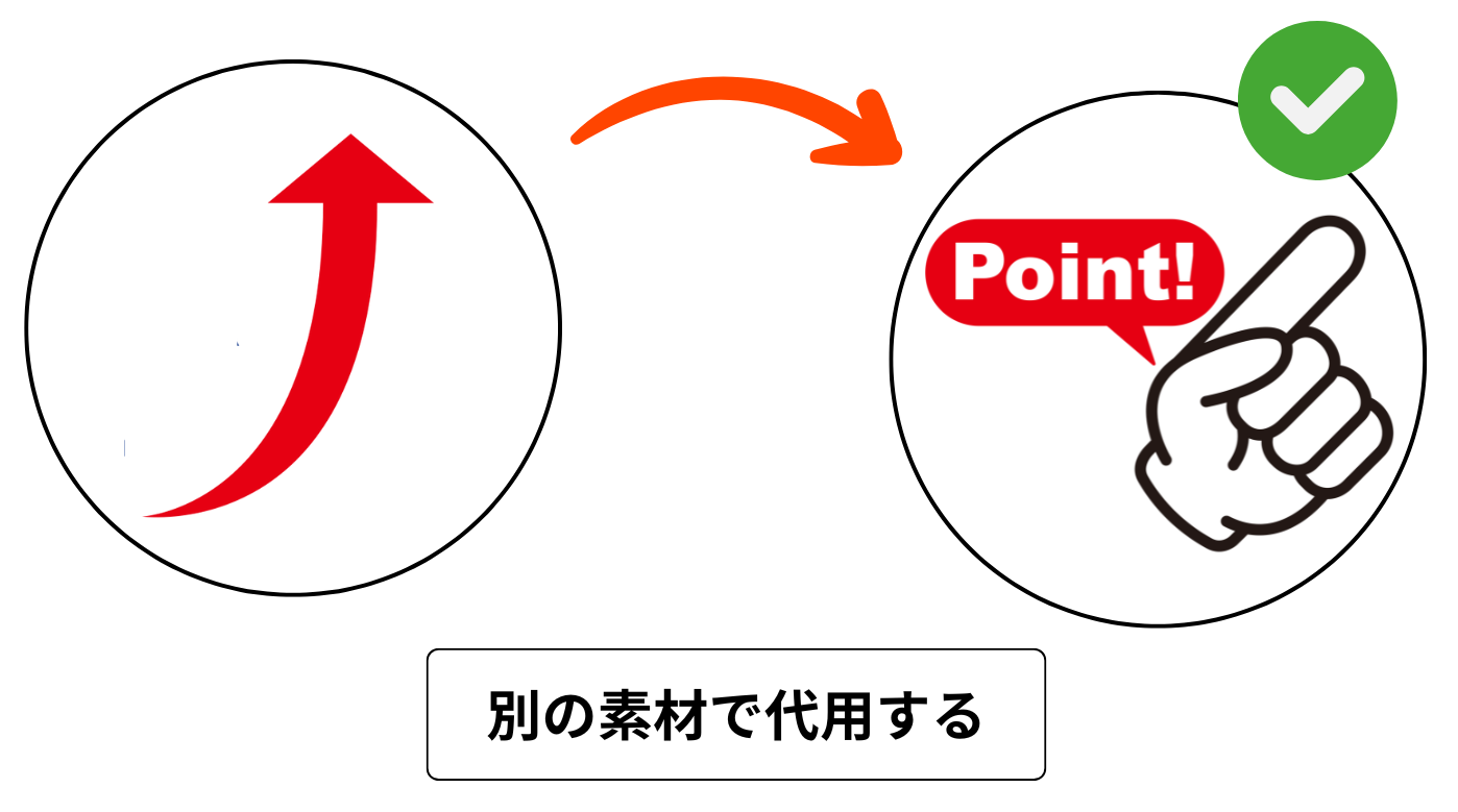 重ねる方の画像(今回は指矢印)は背景が透明なPNG形式の画像の方がおすすめです!