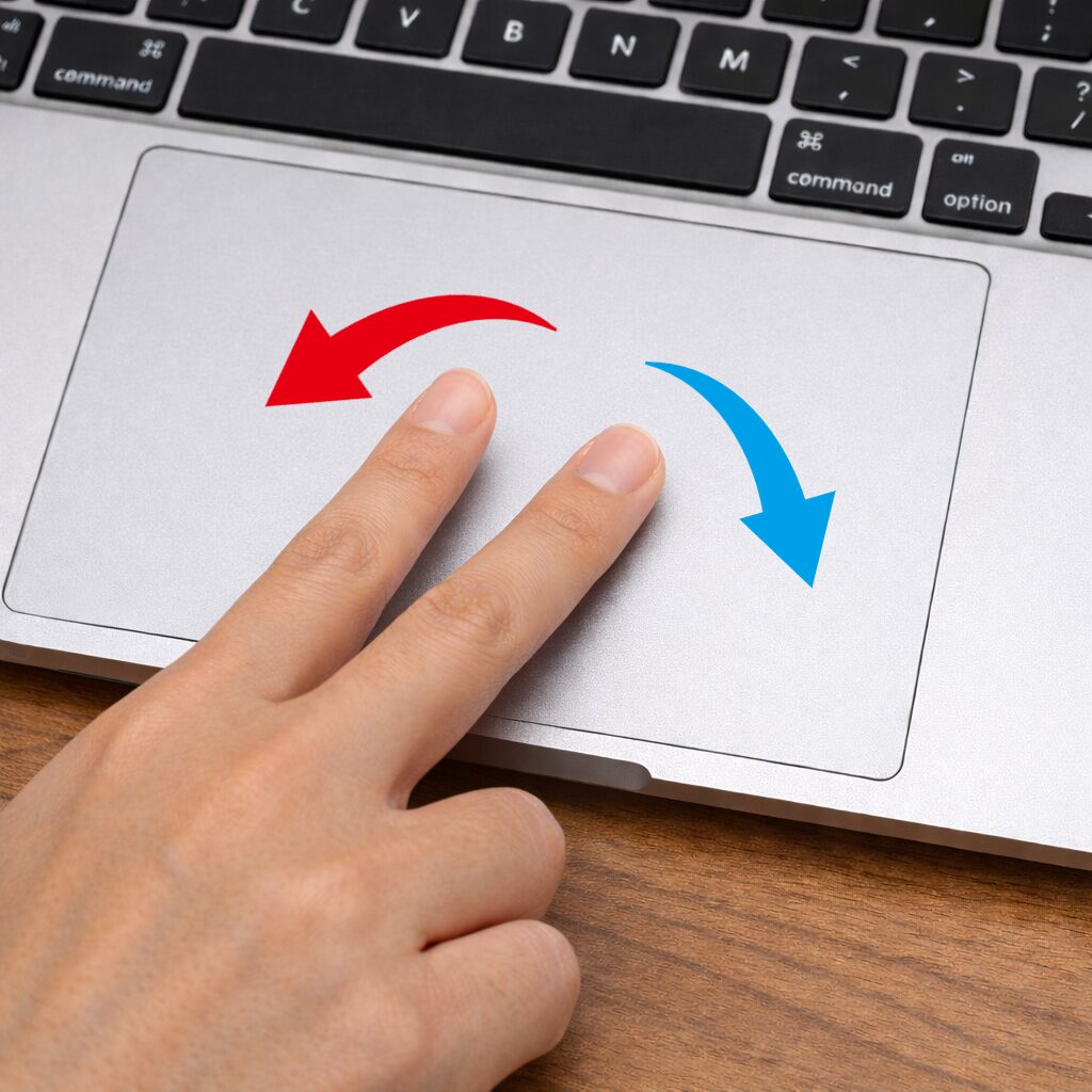 やり方としてはトラックパッドに指2本を置いて画像を回すような感じで操作すると、